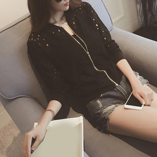 Ta damska krótka kurtka jest wykonana z miękkiego i wygodnego akrylu, idealna do noszenia wiosną i jesienią.. Zaprojektowana w jednolitym kolorze z modnym zapięciem na zamek błyskawiczny, ta kurtka emanuje elegancją i wszechstronnością..