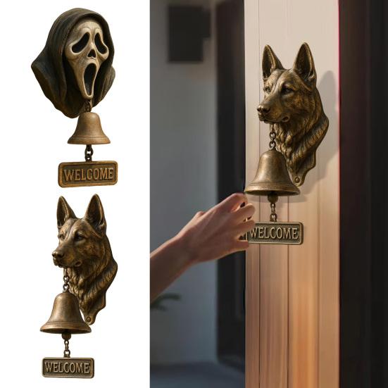 Unikalny design: Wykonany z wysokiej jakości żywicy, ten dzwonek do drzwi przedstawia realistyczną twarz owczarka niemieckiego lub krzyczącego ducha, dodając odrobinę kaprysu i uroku Twojemu wejściu.