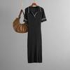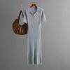 Letnia Sukienka POLO z Klapami w Jednolitym Kolorze, Dopasowana, Wyszczuplająca Biodra, Dzianinowa, z Krótkim Rękawem Dla Kobiet