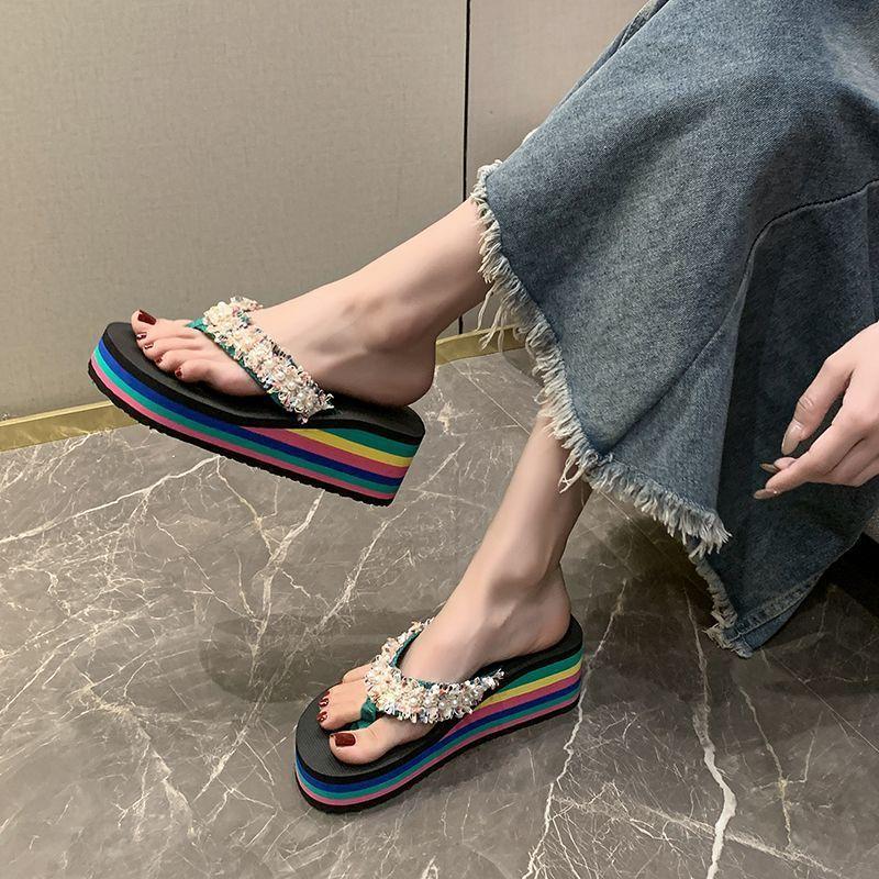 Comfortable flip-flops simple thick-soled outer slippers 2025 summer new muffin cute slippers beach height increase