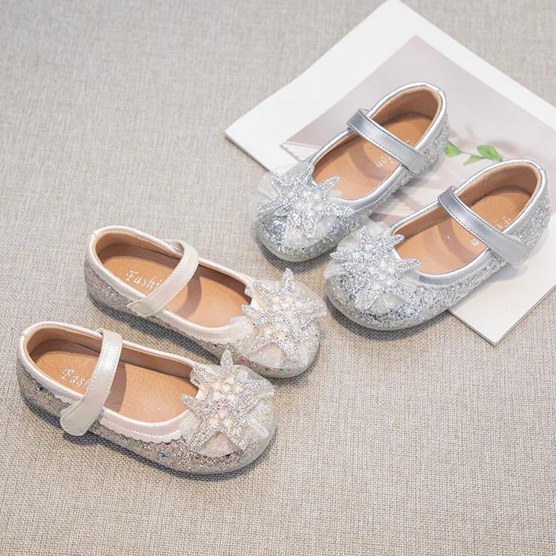 Wiosna 2025 Nowa Kolekcja Dziecięce Uniwersalne Błyszczące Płytkie Czółenka Dziewczęce Kryształowe Księżniczki Buty na Imprezę