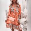 Kobiety Moda Boho Kwiatowy Nadruk Dekolt V Mini Sukienki Casual Luźne Eleganckie Panie Plażowa Impreza Sukienka z Rozszerzanymi Rękawami