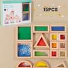 Sensory Wooden Building Blocks Set 15/23pcs Acrylic Rainbow Construction Toys, Made of Beechwood, Perfect for STEM Learning Gifts,Christmas