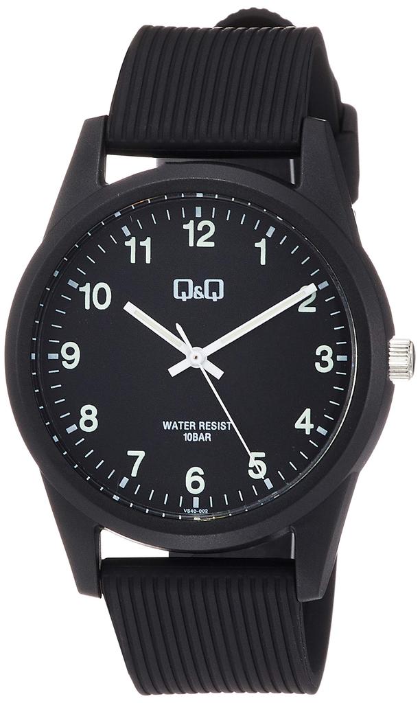 Cue Cue Analogowy 10 ATM Wodoodporny Czarny Uretanowy i VS40-002 Zegarek na rękę, Odporny, Pasek,