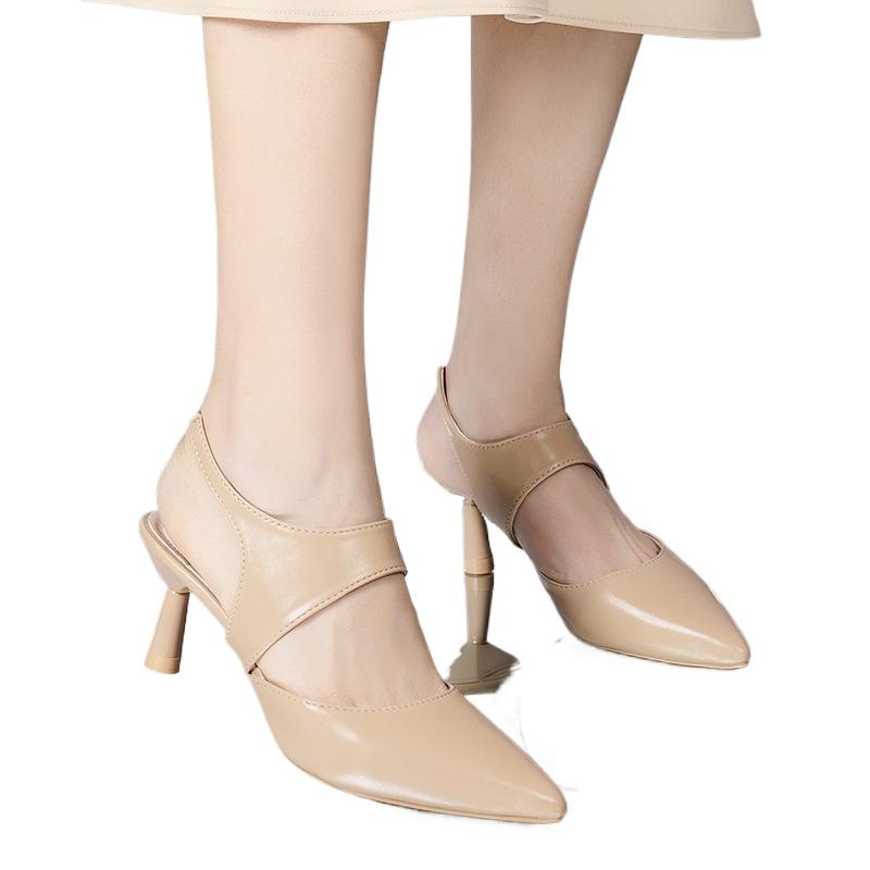 Duży Rozmiar 35-43 Letni Nowy Styl Szpiczasty Nosek Średni Obcas Wysokie Obcasy z Płytkim Noskiem i Paskiem na Pięcie Damskie Sandały i Czółenka