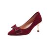 Women's Spring and Autumn New Red Rhinestone Bow Large Wedding Shoes Pointed Comfortable Shallow Mouth High Heels