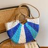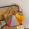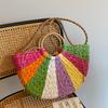 Summer new contrasting color rainbow straw bag portable shoulder oblique span women's bag
