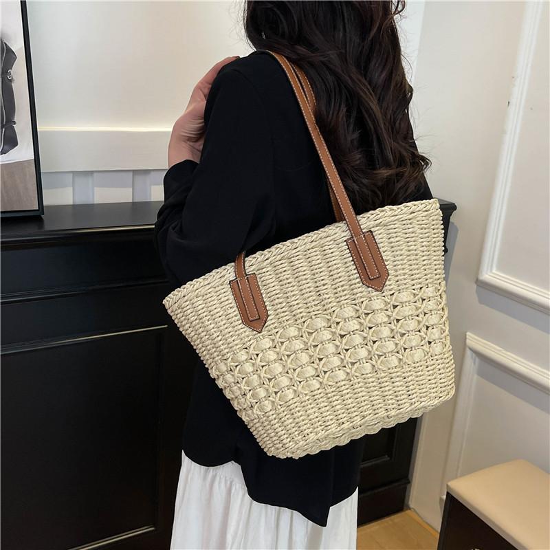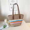 Summer new fashion niche design popular vegetable basket contrasting color straw bag shoulder women's bag