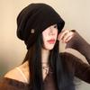 Duży Obwód Głowy, Czapka z Pomponem, Czapka Damska, Jesień i Zima, Czapka z Kapturem, Zimna Czapka, Czapka Zakrywająca Palce