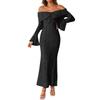 Elegancka Koronkowa Sukienka Maxi z Odkrytymi Ramionami Kobiety Długi Rękaw Sukienki Wieczorowe na Randki