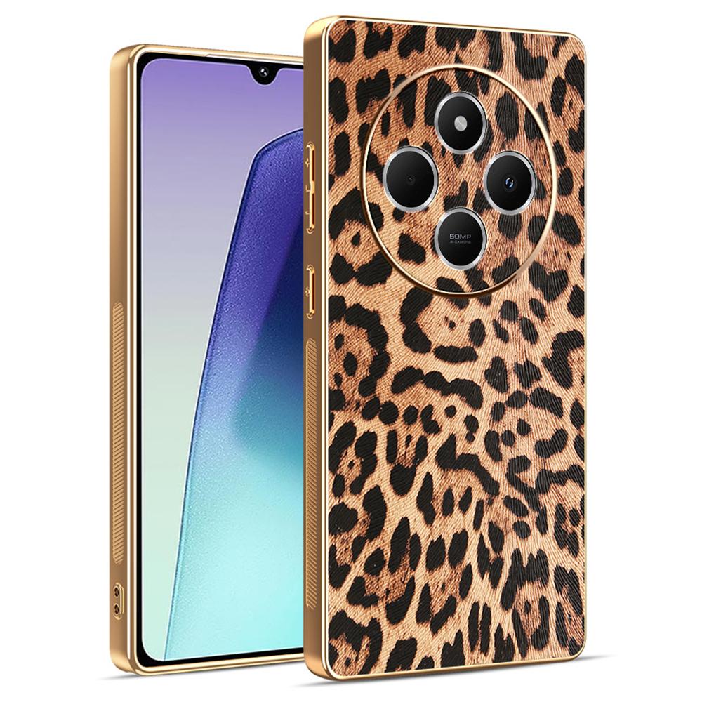 Etui na telefon dla Xiaomi Redmi 14C 4G/14R 5G/A4 5G/Poco C75 4G z nadrukiem panterki powlekane skórą PU PC+TPU galwanizowane etui