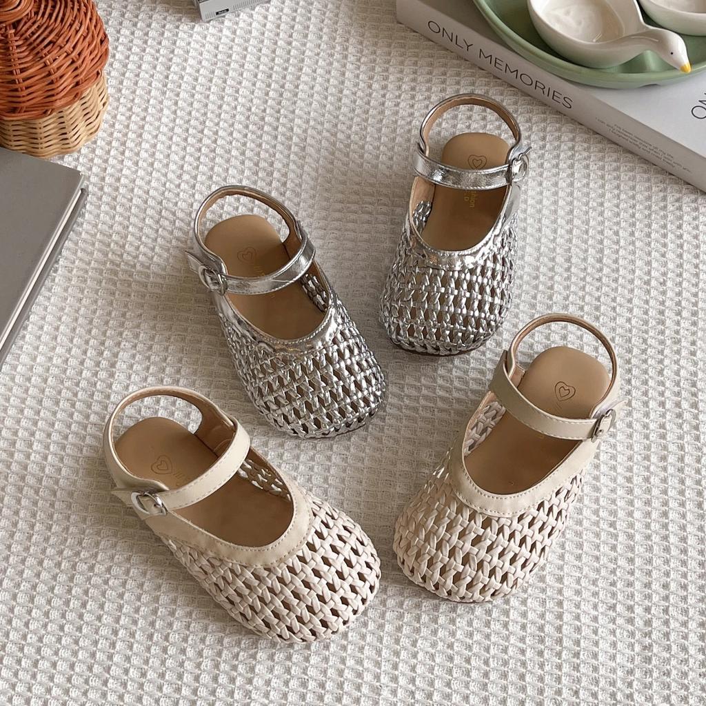 Summer Girl's Sandals Braided Hollow-out Sliver Beige Kids Sliders Versatile Minimalist Shallow Trendy Childern Shoes 22-33