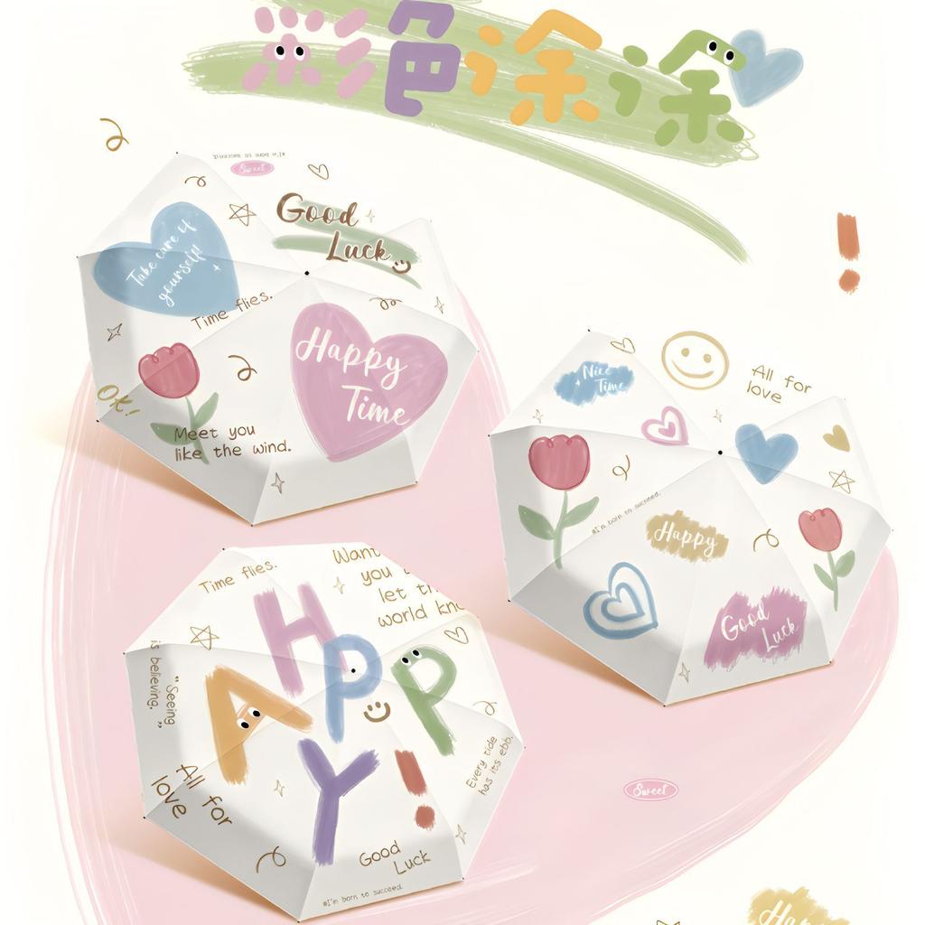 Small fresh love weather and rain umbrella vinyl sunscreen UV protection sun umbrella small portable folding umbrella