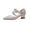 Single Shoes Women's Hollow Sandals Summer New Baotou Rhinestone Large Size Trend Fashion Versatile Gold High Heels Bridal Shoes