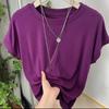 Short Sleeved T-shirt for Women Niche Solid Color Fashionable Summer Outfit Thin Top