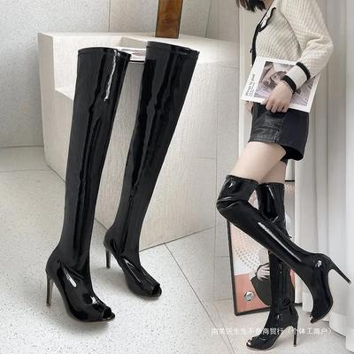 Classic women's long leg high-heeled knee high boots 2024 autumn/winter new lightweight shiny leather women's long leg boots