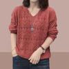Wiosenno-letni sweter damski z dzianiny z dekoltem w serek, ażurowy, z długim rękawem, luźny
