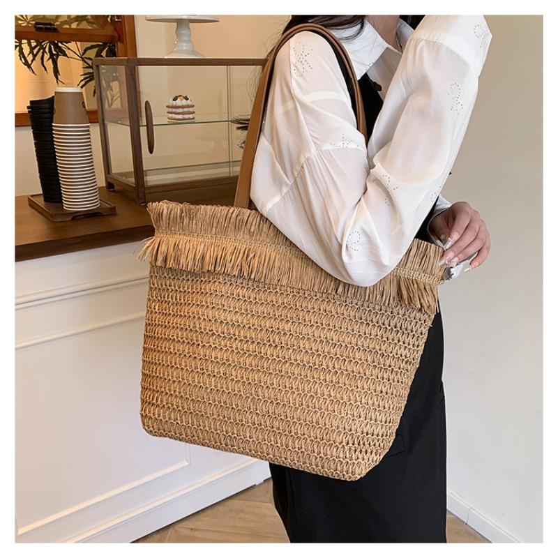 New straw bag hand-woven tassel fashionable and simple portable women's bag large capacity shoulder bag women