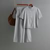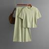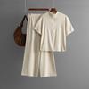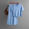 Women's Fashion Semi High Neck Solid Color Short Sleeved Zipper Set Wide Leg Pants Two Piece Set