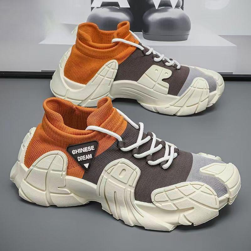 New men's shoes with thick sole lightweight knitted socks casual shoes youth fashion color blocked sports shoes