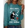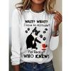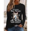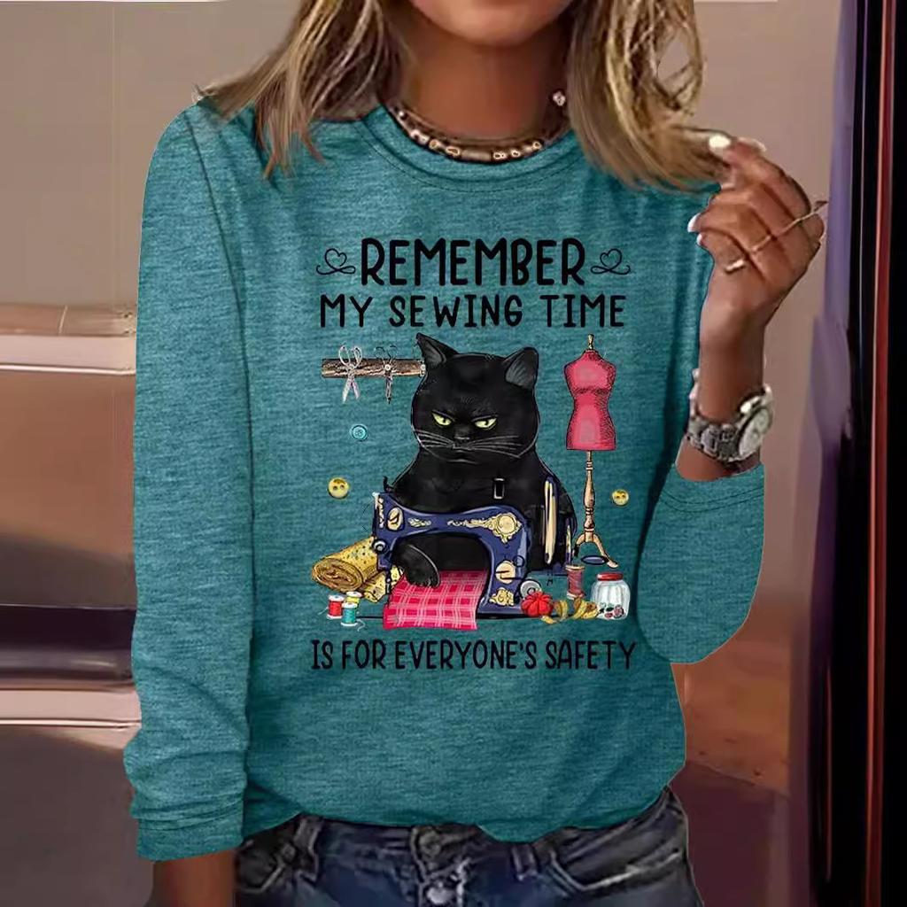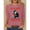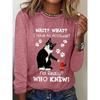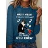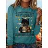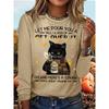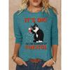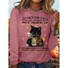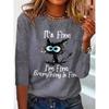 Okrągły dekolt 3D nadruk zabawny kot wzór top modny casual długi rękaw damskie koszulki