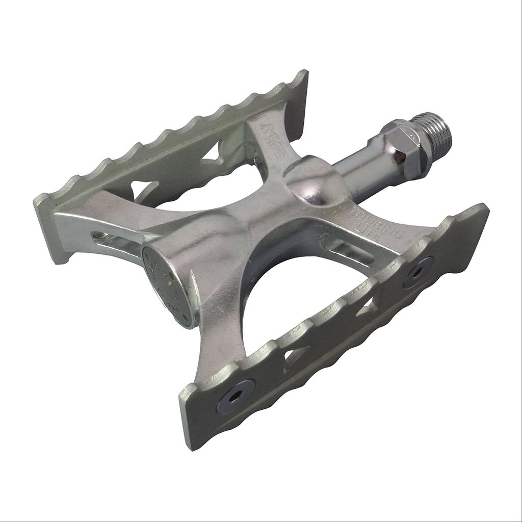 Kraj pochodzenia: Japonia. Materiał: Aluminium. Rozmiar produktu: Bieżnik 93 x 69 mm. Waga: 312 gramów (para). Rozmiar osi pedału: 9/16. Aluminiowy korpus/Pedał dwustronny. Zestaw lewy i prawy. Łożyska kulkowe stożkowe o wysokiej prędkości. Kolor: Srebro. Kompatybilny z reflektorami (Odblaski sprzedawane oddzielnie). Kompatybilny z noskami. Podczas montażu z reflektorem użyj śrub reflektora, aby przymocować oba elementy razem.