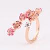 Różowy Emaliowany Pierścionek z Kwiatem Brzoskwini i Kryształami Dla Kobiet Prezent na Ślubną Imprezę Dopasowany do Pani Delikatna Biżuteria