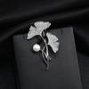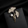 Podwójna broszka z perłą w kształcie liścia miłorzębu japońskiego niszowa wysokiej klasy nowa modna przypinka do klapy damska wysokiej klasy wykwintna mała pachnąca przypinka do płaszcza