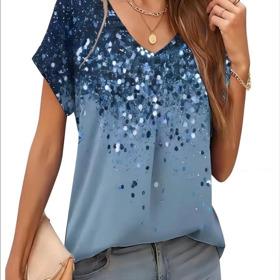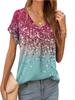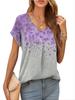 2024 luźna casualowa damska koszulka letnia podstawowa z dekoltem V z krótkim rękawem modna koszulka z cyfrowym nadrukiem 3D top