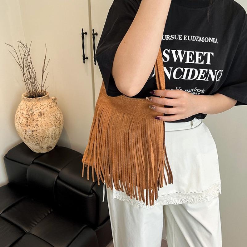 Niche design casual women's bag new fashion matte shoulder messenger bag premium fringed bucket bag