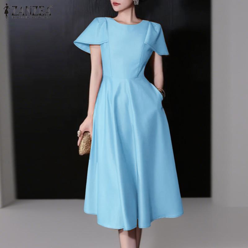 ZANZEA Damska swobodna, letnia sukienka z okrągłym dekoltem i krótkim rękawem