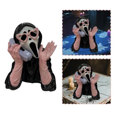 Statua Uchwyt na Telefon z Żywicy na Halloween Świecąca Czarna Krzycząca Dziewczyna Dodatek Koloru do Twojej Scenerii Halloweenowej
