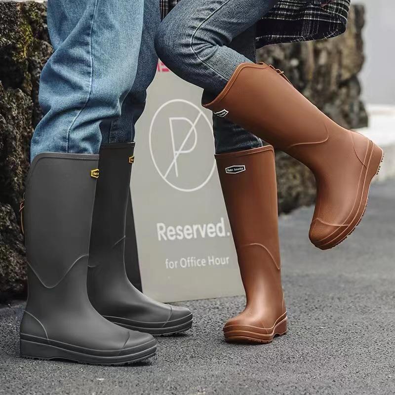High tube rain shoes men's and women's new outdoor platform rain boots wading long tube water boots velvet non-slip water shoes men