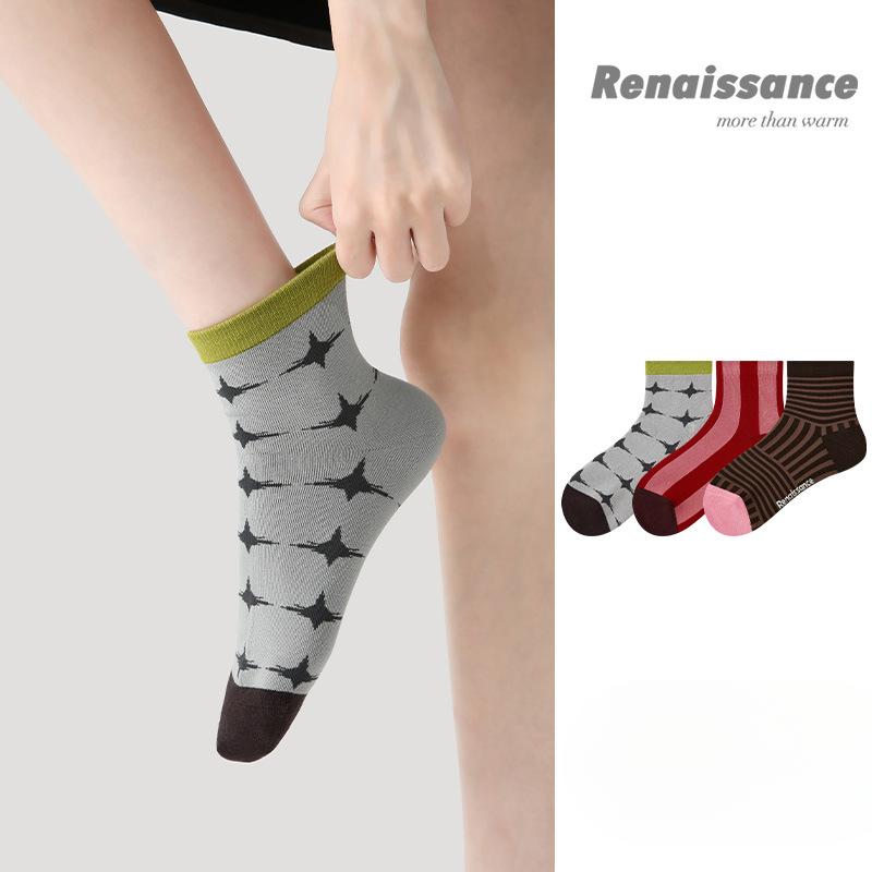 3 Pairs of Women's Summer Thin Geometric Design Breathable Stripe Low Top Socks