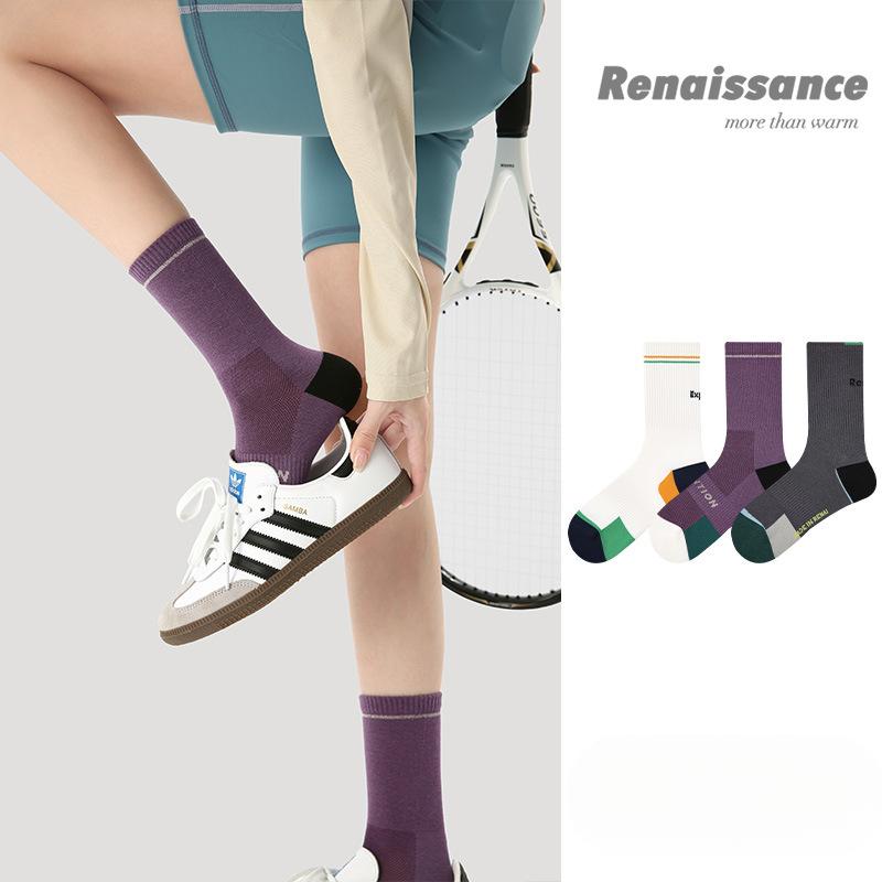 3 Pairs of Female Spring and Summer Thin Style Breathable Sports Tube Cotton Socks