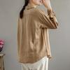 Wiosna Jesień Etniczny Styl Vintage Koronkowa Bluzka Bawełniana z Golfem Damska Długi Rękaw Uniwersalny Top z Guzikami Kobiety Luźna Casualowa Koszula