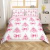 Kreskówkowe Różowe Wstążki Z Nadrukiem Księżniczek Zestawy Pościeli Kołdra Poszewka na Kołdrę Poszewka na Poduszkę Zestawy 2-3 Elementowe Rozmiar Dziecięcy i Dorosły