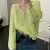 V-neck hollow shirt knitted cardigan women's spring and summer new high-end loose fashion long-sleeved f sunscreen shirt top