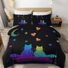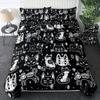 Witch Black Cat Duvet Cover Set Full,Cat Sitting On Moon Bedding Set Vintage Gothic Animals Cat Comforter Cover 2/3pcs Bed Sets