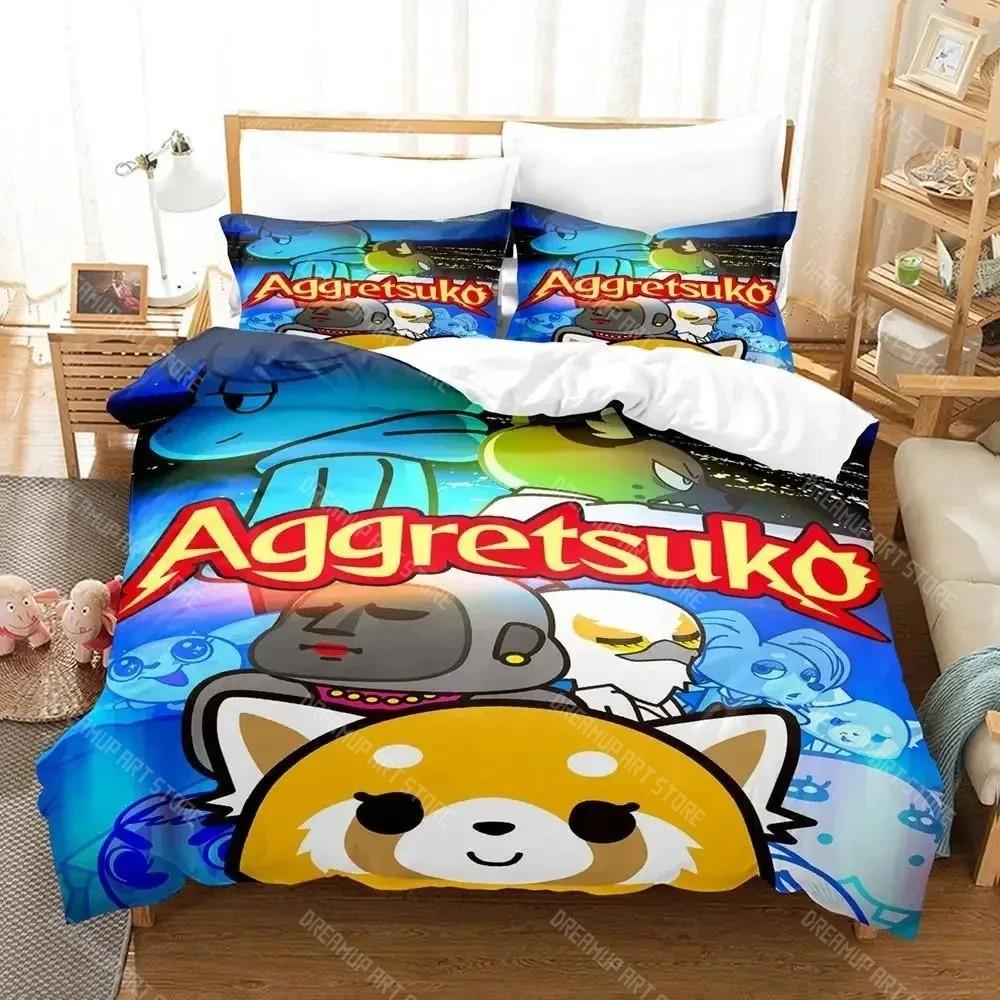 Anime Aggretsuko Zestaw Pościeli Chłopcy Dziewczynki Rozmiar Twin Queen Poszwa na Kołdrę Poszewka na Poduszkę Łóżko Dzieci Dorośli Moda Tekstylia Domowe Możliwość Personalizacji