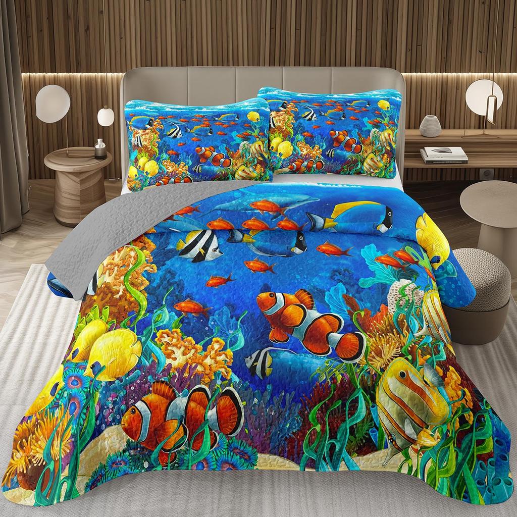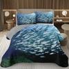 Fish Bedspread Twin Queen Ocean Marine Theme Coverlet Set for Boys Girls Teens Room Soft Lightweight Sea Animal Quilted Bedding