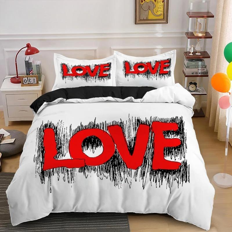Zestaw Poszwy na Kołdrę dla Zakochanej Pary Prezent na Walentynki Pościel w Kształcie Serca King Queen Double 2/3 szt. Poliestrowa Poszwa na Kołdrę