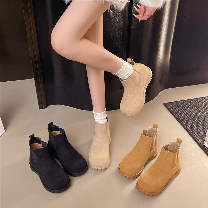 Retro botki Chelsea z wewnętrznym podwyższeniem damskie wiosenne nowe matowe skórzane kominowe na grubym obcasie krótkie buty dziecięce na grubej podeszwie buty Martin