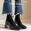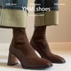 Francuskie Vintage Łączone Brązowe Elastyczne Obcisłe Kozaki Damskie Zamek z Tyłu na Główce Wysoki Obcas Krótkie Kozaki Małe Skarpety Kozaki
