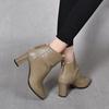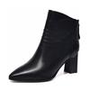 Fashion high-heeled small bare boots autumn and winter new pointed fashion boots natural wrinkled sheepskin thick-heeled short boots