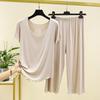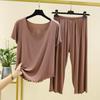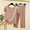 Damska Moda Jednolity Kolor Domowy Zestaw Piżamowy Krótki Rękaw Siedmiu Spodni Drewniany Brzeg