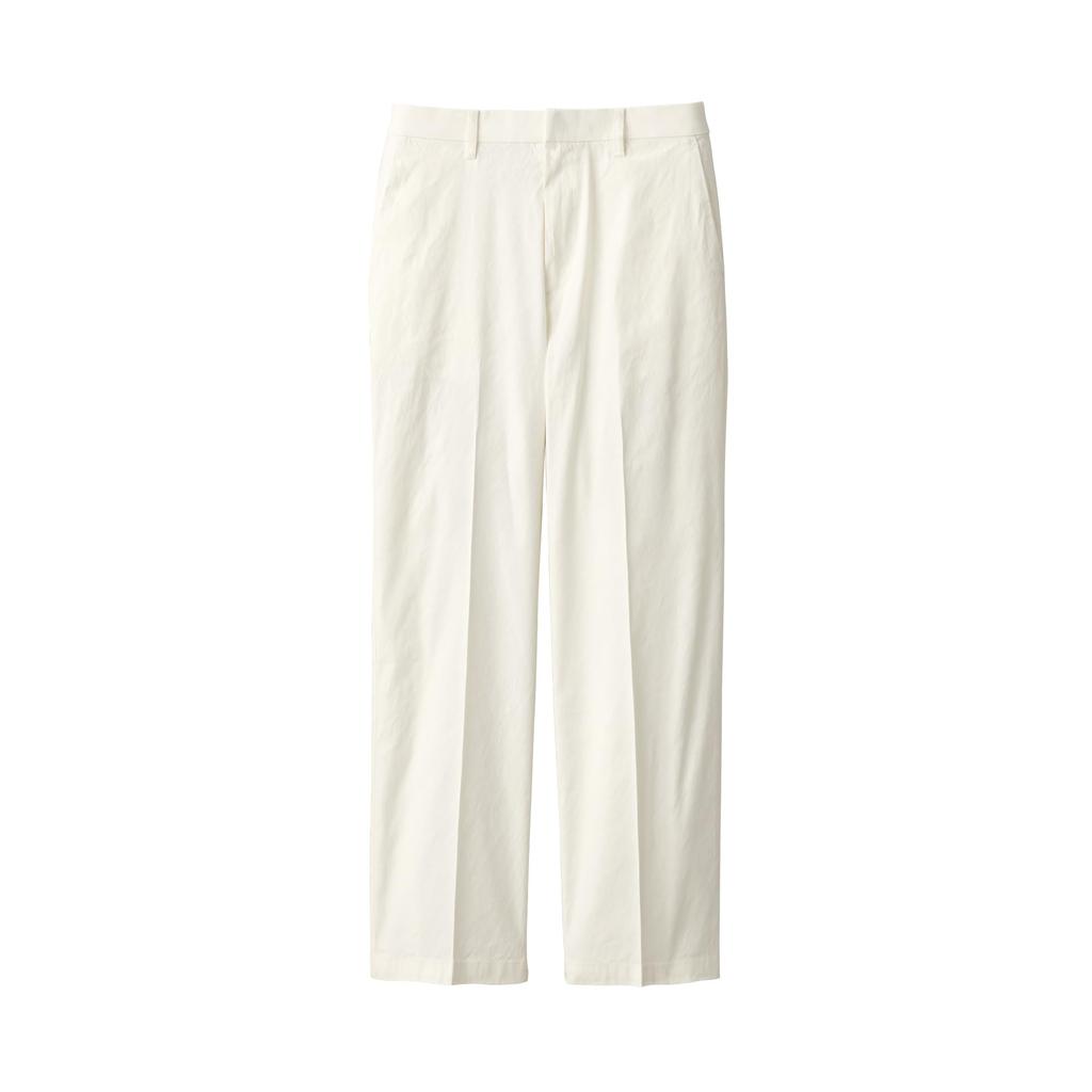 MUJI Women's Hemp Blend Stretch Straight Pants, Off-White, Size XL, BE1QVA4S