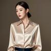 Letni Trend Moda Damska Casualowa Elegancka Satynowa Koszula z Długim Rękawem Koszule i Bluzki Biurowe Damskie Slim Damskie Ubrania