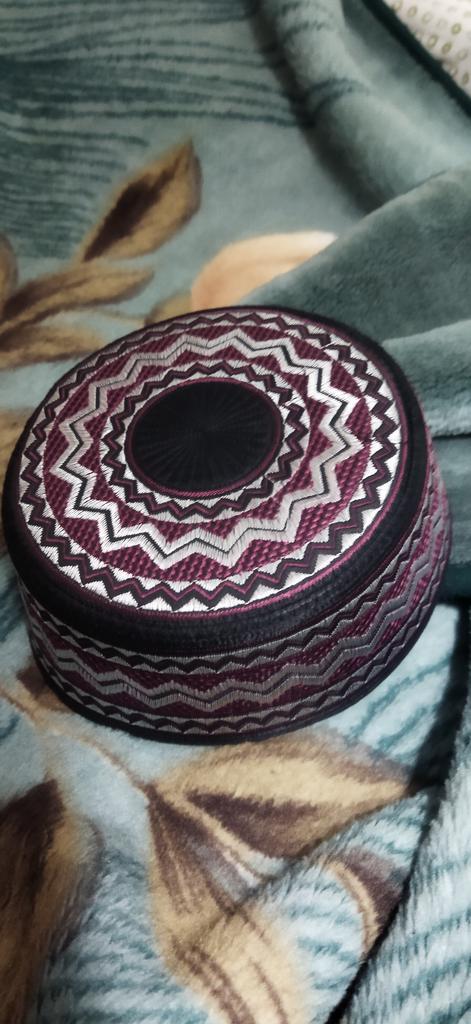 Męska haftowana saudyjska czapka modlitewna - okrągłe rondo płaski wierzch
