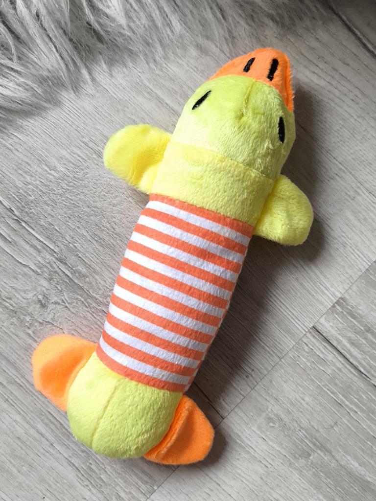 Mięciutka kaczuszka dla 🐶 Dobra jakość, brak obcego zapachu. Rozmiar doskonale pasuje dla psów małych ras. Cytrynek bardzo polubił tę kaczuszkę. Nawet z nią spałem 😁 Poleca do zakupu 🐾